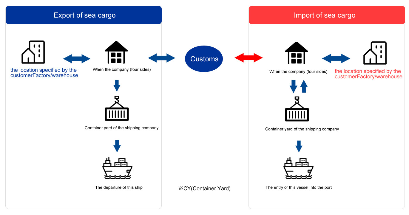 We handle container cargo transportation to all destinations worldwide, primarily in Asia. Based on a network built through close cooperation with shipping companies and carriers worldwide, we provide optimal shipping schedules and "customized" services tailored to customer needs. Additionally, we can arrange import/export customs clearance, container loading (baling) for export goods, and container unloading (de-baling) for import goods in conjunction with transportation. We also offer related services such as arranging import/export documentation and marine cargo insurance.