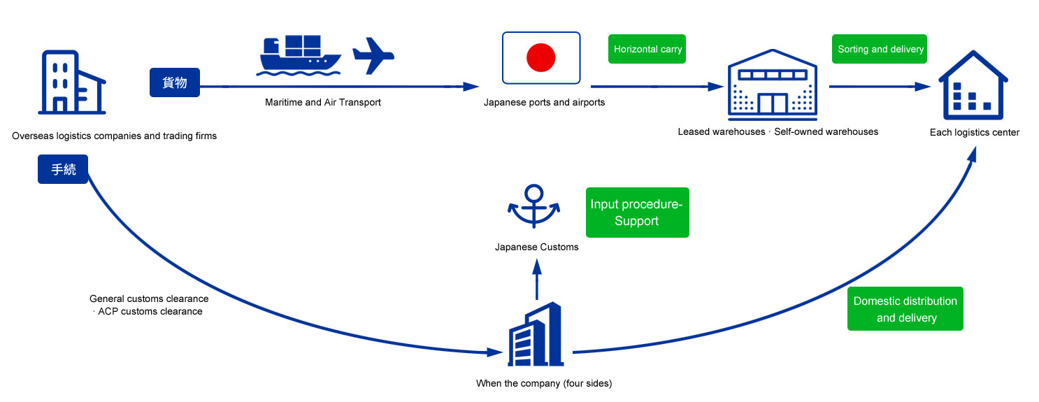 We have qualified customs brokers who are well-versed in customs procedures and related laws, leveraging their extensive knowledge and experience. Smooth customs processing requires abundant experience, know-how, and advanced specialized knowledge. Not only is accurate declaration in compliance with the Customs Business Act, Customs Tariff Act, and Customs Tariff Rate Act essential, but precise handling of various laws such as the Pharmaceutical Affairs Law, Food Sanitation Law, and Import and Export Trade Management Order is also indispensable.